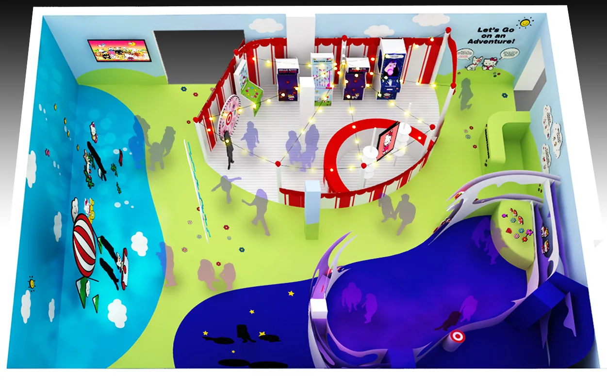 As the top line sponsor of Sanrio's first Hello Kitty Con, Target hoped to achieve a high-profile presence within the event that embraced the two brands' long involvement. In response we developed a character-driven interior concept rich with interactive entertainment highlighting Hello Kitty's 40th anniversary products. The activation includes unique upright video games, carnival attractions and prizes, interactive music and animation stations, and automated photo booths.